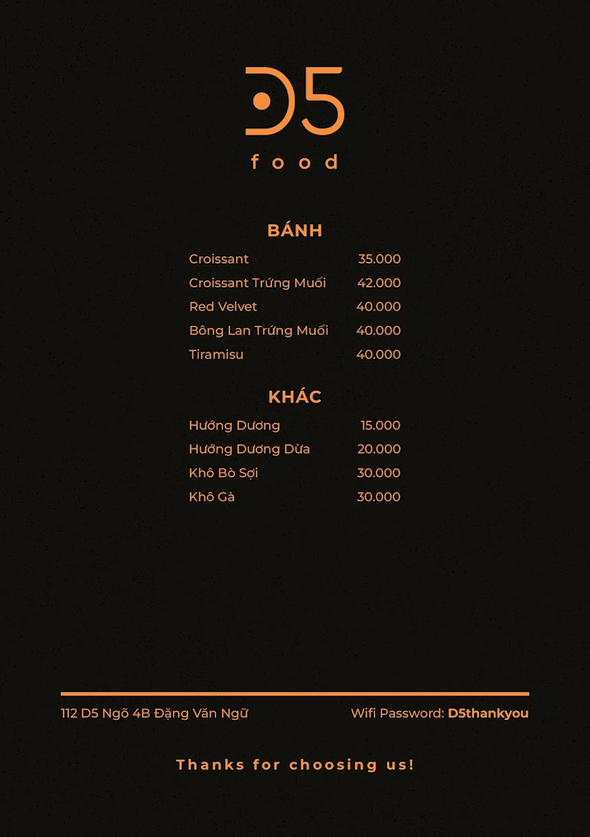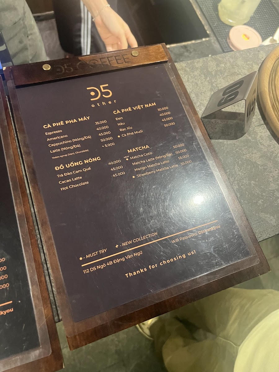 D5 coffee Menu
